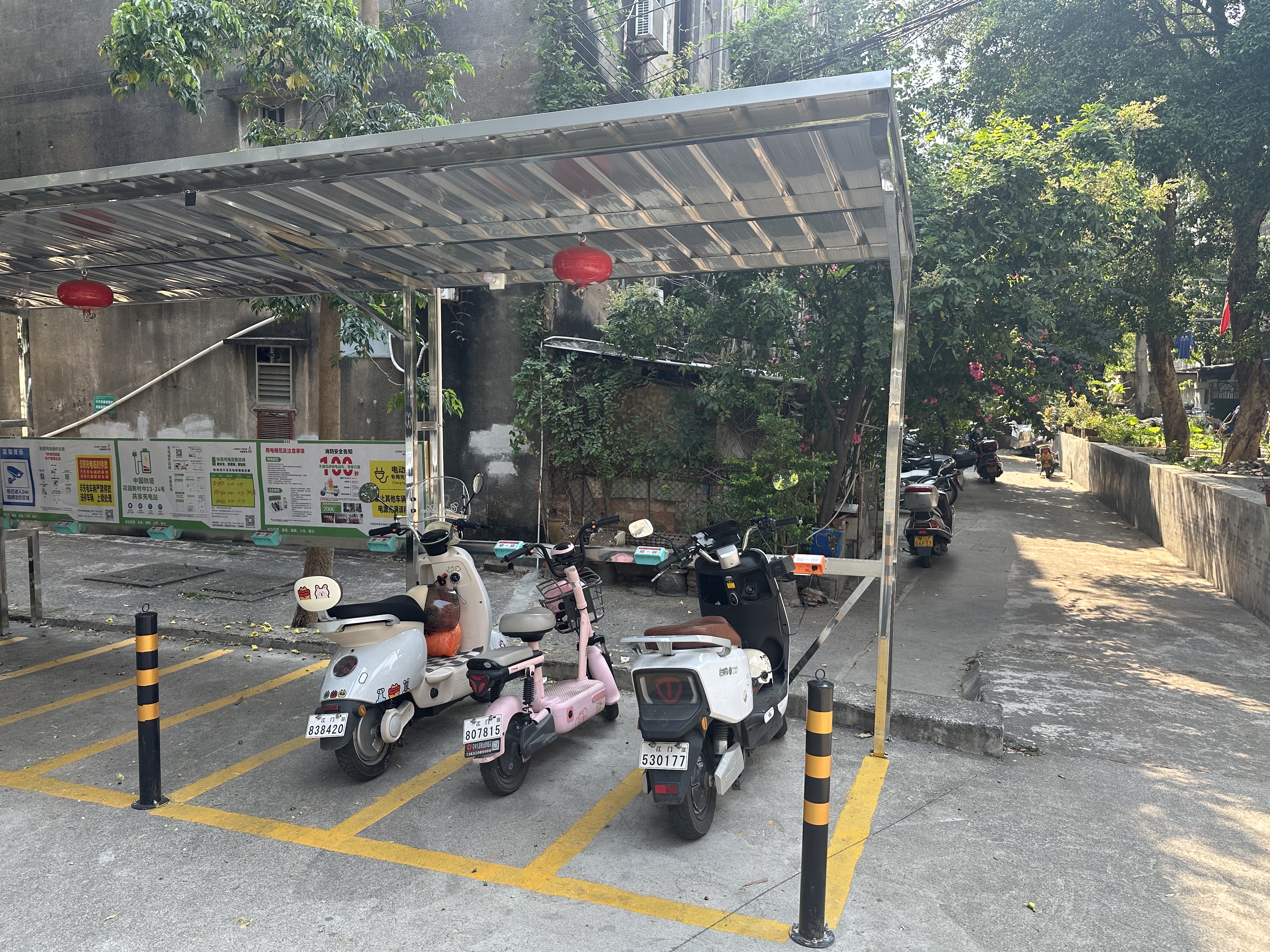 針對空間有限的小區(qū),充分利用邊角地、閑置地等資源,科學(xué)規(guī)劃充電樁點(diǎn)位及土建管道。如在象山社區(qū),屬地鎮(zhèn)街通過利用小區(qū)綠化帶邊緣和停車場角落,引進(jìn)第三方充電運(yùn)營企業(yè)增設(shè)了多個(gè)充電樁,極大方便居民日常充電需求;對于有條件的小區(qū),則建設(shè)集中電動(dòng)自行車充電車棚,配備防火、防雨等安全設(shè)施,確保充電過程安全可靠確保。
