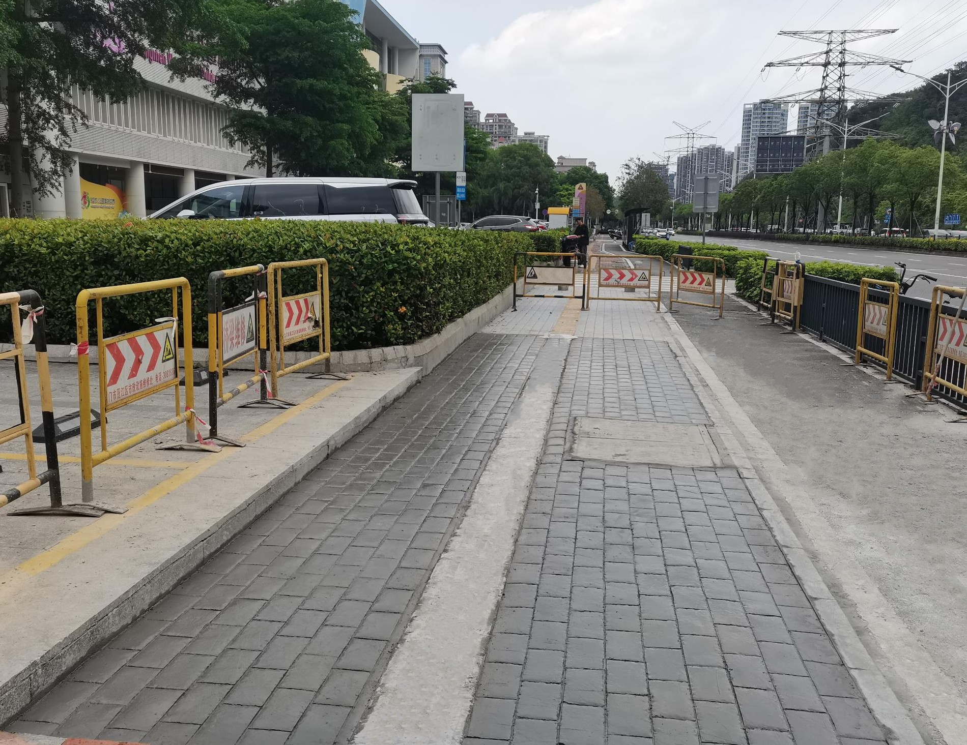 修復(fù)后的豐樂(lè)路人行道路面,養(yǎng)護(hù)期間做好圍蔽措施