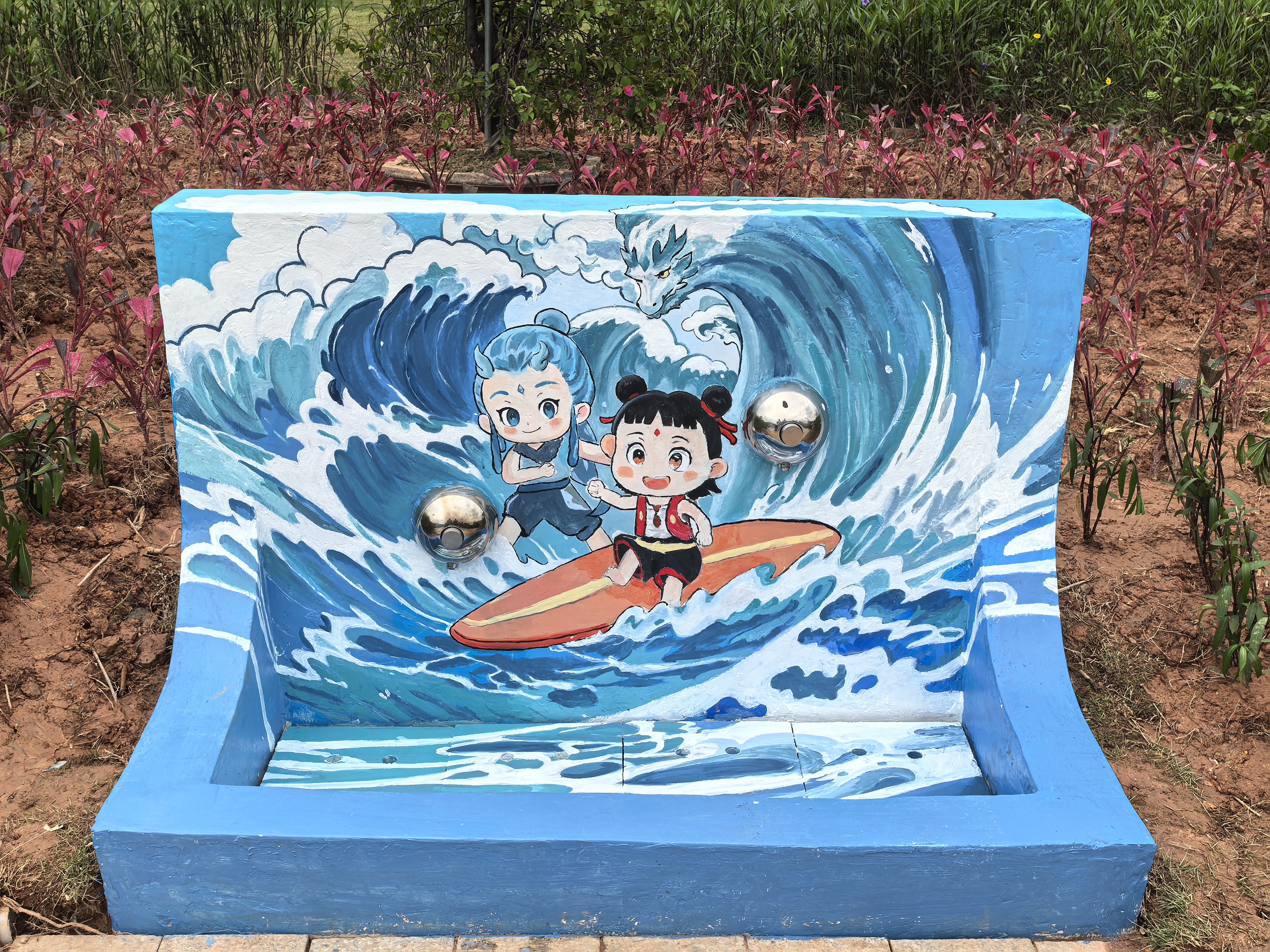 據(jù)了解,為在有限預算內(nèi)提升游樂空間趣味性,該局秉承“勤儉辦一切事業(yè)”的原則,充分挖掘內(nèi)部技術資源,對洗腳池進行低成本涂鴉裝飾。經(jīng)內(nèi)部創(chuàng)意征集與研討,綠化中心工作人員最終選定孩子喜愛的哪吒敖丙形象為主題,并主動利用業(yè)余時間化身 “畫師”,對池壁進行精心勾勒、細致上色。一筆一劃間,哪吒、敖丙在海浪中沖浪的生動形象逐漸呈現(xiàn),傳遞出“沖向世界、沖向未來、未來可期”的蓬勃朝氣。