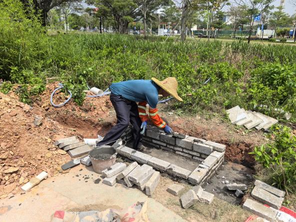選址確定后,綠化中心工作人員迅速行動,憑借專業(yè)技術,利用公園改造剩余與常見建材,在保證質量的同時最大限度降低成本。選材時嚴格遵循實用安全與經(jīng)濟并重的原則,選用易清潔、安全性高且性價比優(yōu)的材料。施工全程嚴守規(guī)范標準,精準把控每一道工藝細節(jié),確保洗腳池結構穩(wěn)固,為孩子筑牢安全防線。