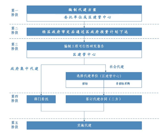 ?。ǘ┥鐣J剑航?jīng)區(qū)政府批準,由區(qū)建管中心通過招標、非招標等方式,合法合規(guī)確定社會代建單位組織項目建設。