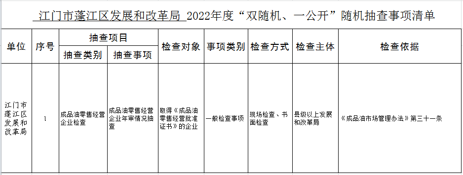 2022年“雙隨機(jī)、一公開”年度抽查計(jì)劃表和抽查事項(xiàng)清單