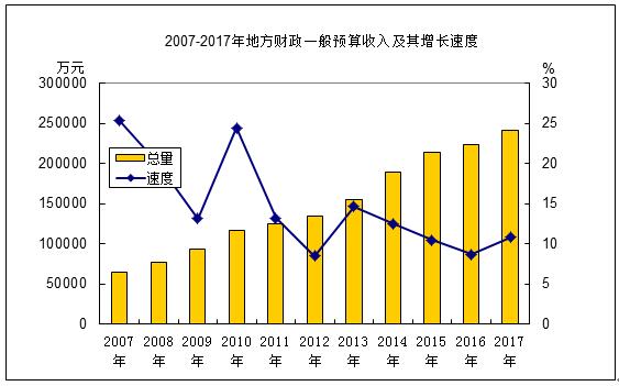 2017年,財政收入穩(wěn)定增長,全區(qū)地方財政一般預(yù)算收入24.17億元,同比增長10.78%;地方財政一般預(yù)算支出33.85億元,同比增長10.4%。
