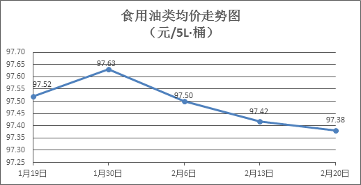食用油類商品價格小幅波動。本周所監(jiān)測的9種食用油(5L裝)商品價格波動情況為2漲4跌3平,綜合零售均價為97.38元/桶,環(huán)比下降0.04%。其中:魯花花生油、金龍魚調和油零售均價分別為每桶158.99元、71.39元,環(huán)比分別下降0.10%、下降0.21%。