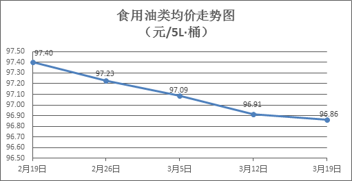 食用油類商品價格穩(wěn)中微降。本周所監(jiān)測的9種食用油(5L裝)商品價格波動情況為6跌3平,綜合零售均價為96.86元/桶,環(huán)比下降0.05%。其中:魯花花生油、金龍魚調和油零售均價分別為每桶157.48元、71.46元,環(huán)比分別下降0.02%、持平。
