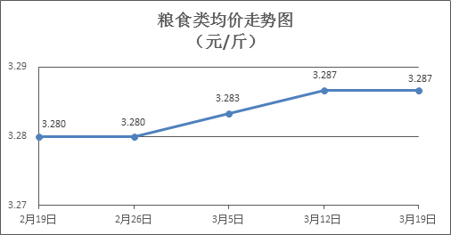 糧食類商品價格保持穩(wěn)定。本周所監(jiān)測的6種糧食商品價格均持平,綜合零售均價為3.287元/斤。其中:晚秈米、絲苗米、標準粉零售均價分別為每斤3.26元、3.44元、3.14元,環(huán)比均持平。