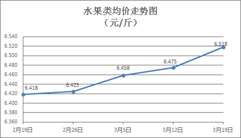 水果類商品價格有所上漲。本周所監(jiān)測的6種水果商品價格均上漲,綜合零售均價為6.518元/斤,環(huán)比上漲0.67%。其中蘋果、香蕉、梨零售均價分別為每斤7.15元、3.14元、6.04元,環(huán)比分別上漲0.28%、上漲0.64%、上漲0.50%。