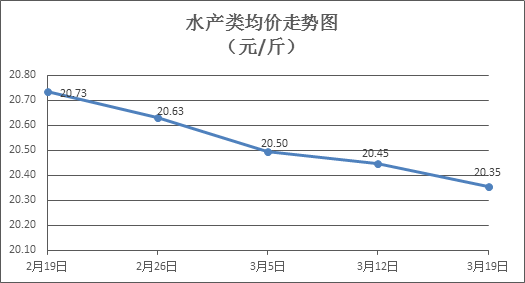 水產(chǎn)類商品價格主降。本周所監(jiān)測的10種水產(chǎn)商品價格波動情況為4漲5跌1平,綜合均價為20.35元/斤,環(huán)比下降0.45%。其中:草魚、鯽魚、羅非魚、基圍蝦零售均價分別為每斤10.85元、13.95元、8.47元、38.27元,環(huán)比分別下降1.18%、上漲0.14%、下降1.40%、下降0.75%。