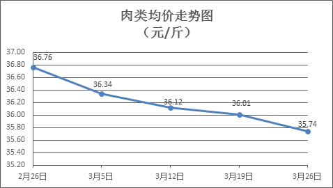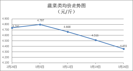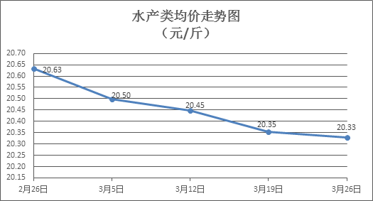 據(jù)本市21家農(nóng)貿(mào)市場監(jiān)測數(shù)據(jù)顯示,上周3月20日至3月26日(下同)市場上各類“菜籃子”商品供應(yīng)充足,所監(jiān)測的7大類“菜籃子”商品價格3漲4跌。其中:糧油類商品價格微幅波動,肉菜類、水產(chǎn)類商品價格有所下降,禽蛋類、水果類商品價格總體微升。從近期雨水天氣及市場供求情況分析,近期肉類、蔬菜類商品價格有止跌回穩(wěn)預(yù)期,其他商品價格則仍以窄幅盤整為主。