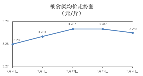 糧食類商品價格基本平穩(wěn)。本周所監(jiān)測的6種糧食商品價格波動情況為1跌5平,綜合零售均價為3.285元/斤,環(huán)比下降0.05%。其中:晚秈米、絲苗米、標(biāo)準(zhǔn)粉零售均價分別為每斤3.26元、3.43元、3.14元,環(huán)比分別持平、下降0.29%、持平。