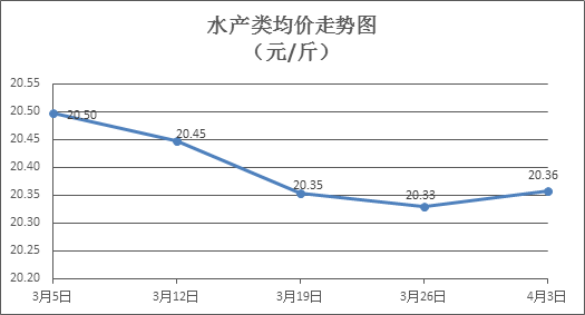 水產類商品價格震蕩偏強。本周所監(jiān)測的10種水產商品價格波動情況為6漲3跌1平,綜合均價為20.36元/斤,環(huán)比上漲0.13%。其中:草魚、鯽魚、鳙魚、羅非魚、基圍蝦零售均價分別為每斤10.91元、13.96元、10.12元、8.43元、38.43元,環(huán)比分別上漲0.28%、上漲0.87%、下降0.10%、上漲0.48%、上漲0.37%。