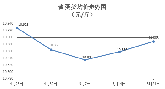 家禽類商品價格小幅上漲。上周所監(jiān)測的6種禽蛋類商品價格波動情況為4漲2跌,綜合零售均價為10.888元/斤,環(huán)比上漲0.28%。其中:白條雞、白條鴨零售均價分別為每斤19.77元、15.52元,環(huán)比分別上漲0.30%、上漲1.84%;白殼雞蛋、鴨蛋零售均價分別為每斤6.71元、7.90元,環(huán)比分別下降1.47%、上漲0.89%。