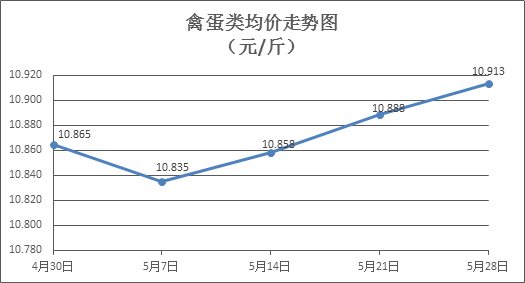 禽蛋類商品價格總體略漲。上周所監(jiān)測的6種禽蛋類商品價格波動情況為4漲2跌,綜合零售均價為10.913元/斤,環(huán)比上漲0.23%。其中:白條雞、白條鴨零售均價分別為每斤19.69元、15.73元,環(huán)比分別下降0.40%、上漲1.35%;白殼雞蛋、鴨蛋零售均價分別為每斤6.66元、7.90元,環(huán)比分別下降0.75%、持平。