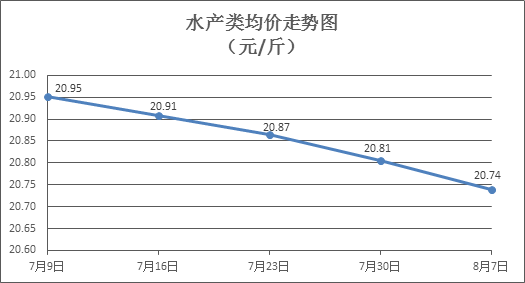 水產(chǎn)類(lèi)商品價(jià)格以降為主。上周所監(jiān)測(cè)的10種水產(chǎn)商品價(jià)格波動(dòng)情況為2漲6跌2平,綜合均價(jià)為20.74元/斤,環(huán)比下降0. 32%。其中:草魚(yú)、鰱魚(yú)、鳙魚(yú)、羅非魚(yú)、基圍蝦零售均價(jià)分別為每斤10.99元、9.72元、10.20元、8.28元、36.52元,環(huán)比分別下降0.09%、下降1.32%、下降0.10%、下降0.72%、下降1.48%。