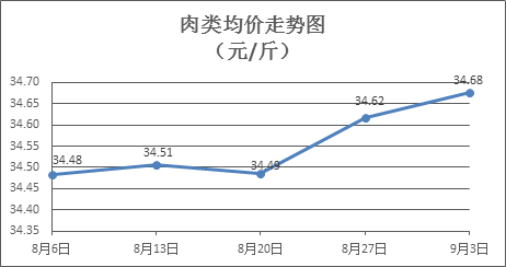 肉類商品價(jià)格微幅上漲。上周所監(jiān)測(cè)的8種肉類商品價(jià)格波動(dòng)情況為6漲2跌,綜合零售均價(jià)為34.68元/斤,環(huán)比上漲0.17%。其中:排骨、精瘦肉、有皮上肉、牛肉、帶骨羊肉零售均價(jià)分別為每斤29.83元、18.76元、14.26元、53.94元、45.25元,環(huán)比分別下降0.10%、上漲0.11%、上漲0.07%、上漲0.15%、上漲0.33%。