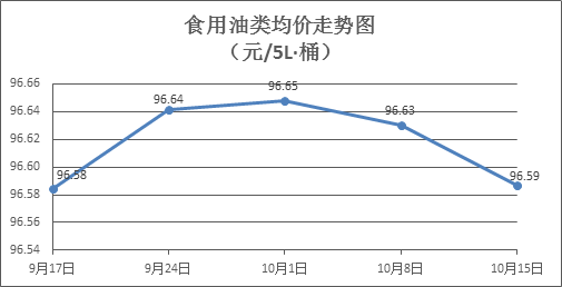 食用油類商品價格微幅盤整。上周所監(jiān)測的9種食用油(5L裝)商品價格波動情況為5漲1跌3平,綜合零售均價為96.59元/桶,環(huán)比下降0.04%。其中:胡姬花花生油、大豆油零售均價分別為每桶146.25元、60.59元,環(huán)比分別下降0.85%、上漲0.10%。