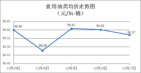 食用油類商品價格穩(wěn)中略降。上周所監(jiān)測的9種食用油(5L裝)商品價格波動情況為1漲5跌3平,綜合零售均價為96.57元/桶,環(huán)比下降0.03%。其中:魯花花生油、玉米油零售均價分別為每桶157.13元、74.68元,環(huán)比分別下降0.04%、下降0.11%。