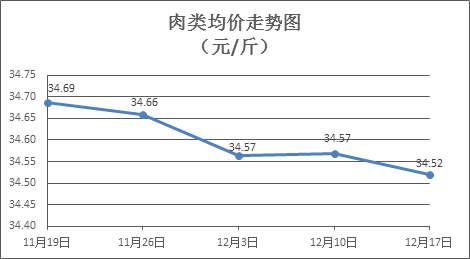 肉類商品價格微幅下降。上周所監(jiān)測的8種肉類商品價格波動情況為7跌1平,綜合零售均價為34.52元/斤,環(huán)比下降0.14%。其中:排骨、精瘦肉、有皮上肉、牛肉、帶骨羊肉零售均價分別為每斤29.00元、18.49元、14.37元、54.45元、43.19元,環(huán)比分別下降0.45%、下降0.54%、下降0.28%、下降0.09%、下降0.14%。