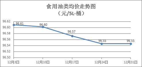 食用油類商品價(jià)格微幅波動(dòng)。上周所監(jiān)測(cè)的9種食用油(5L裝)商品價(jià)格波動(dòng)情況為2漲3跌4平,綜合零售均價(jià)為96.55元/桶,環(huán)比持平。其中:魯花花生油、大豆油零售均價(jià)分別為每桶157.13元、60.23元,環(huán)比分別上漲0.06%、下降0.10%。