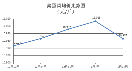 禽蛋類商品價(jià)格以降為主。上周所監(jiān)測的6種禽蛋類商品價(jià)格波動(dòng)情況為1漲5跌,綜合零售均價(jià)為10.967元/斤,環(huán)比下降0.42%。其中:白條雞、白條鴨零售均價(jià)分別為每斤20.09元、15.16元,環(huán)比分別下降0.25%、下降1.04%;白殼雞蛋、鴨蛋零售均價(jià)分別為每斤6.76元、7.78元,環(huán)比分別下降0.15%、下降0.64%。