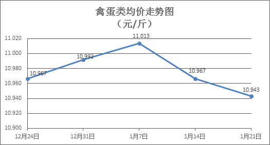 禽蛋類商品價格略有下降。上周所監(jiān)測的6種禽蛋類商品價格波動情況為1漲3跌2平,綜合零售均價為10.943元/斤,環(huán)比下降0.21%。其中:白條雞、白條鴨零售均價分別為每斤20.09元、15.11元,環(huán)比分別持平、下降0.33%;白殼雞蛋、鴨蛋零售均價分別為每斤6.72元、7.70元,環(huán)比分別下降0.59%、下降1.03%。