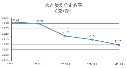 水產(chǎn)類商品價(jià)格總體微降。所監(jiān)測(cè)的10種水產(chǎn)商品價(jià)格波動(dòng)情況為2漲4跌4平,綜合均價(jià)為每斤21.20元,環(huán)比下降0.24%。其中:草魚、鯽魚、羅非魚、基圍蝦零售均價(jià)分別為每斤11.18元、14.25元、8.74元、32.73元,環(huán)比分別上漲0.27%、持平、下降0.57%、下降0.52%。