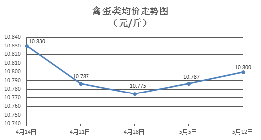 禽蛋類商品價格窄幅盤整。所監(jiān)測的6種禽蛋類商品價格波動情況為2漲2跌2平,綜合零售均價為每斤10.800元,環(huán)比上漲0.12%。其中:白條雞、白條鴨零售均價分別為每斤20.07元、14.94元,環(huán)比分別上漲0.65%、持平;白殼雞蛋、鴨蛋零售均價分別為每斤6.36元、7.48元,環(huán)比分別上漲0.63%、下降0.40%。