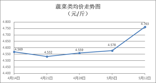 蔬菜類商品價格普漲。所監(jiān)測的32 種蔬菜商品價格波動情況為28漲3跌1平,綜合零售均價為每斤4.763元,環(huán)比上漲4.05%。其中:漲幅居前的品種包括生菜、花菜、椰菜,零售均價分別為每斤4.62元、5.13元、2.93元,環(huán)比分別上漲21.90%、14.00%、8.12%;跌幅靠前的品種包括黃瓜、水空心菜、蒜苔,零售均價分別為每斤3.60元、4.92元、8.24元,環(huán)比分別下降2.44%、1.60%、0.72%。
