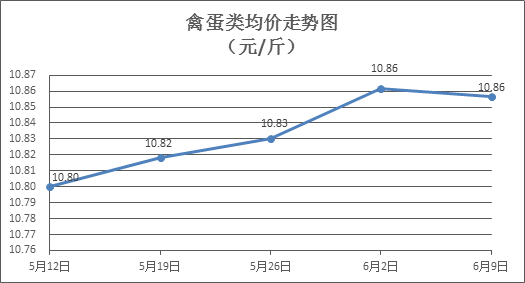 禽蛋類商品價格窄幅波動。所監(jiān)測的6種禽蛋類商品價格波動情況為3漲2跌1平,綜合零售均價為每斤10.86元,環(huán)比下降0.05%。其中:白條雞、白條鴨零售均價分別為每斤19.96元、15.01元,環(huán)比分別下降0.40%、上漲0.20%;白殼雞蛋、鴨蛋零售均價分別為每斤6.39元、7.52元,環(huán)比分別上漲0.63%、持平。