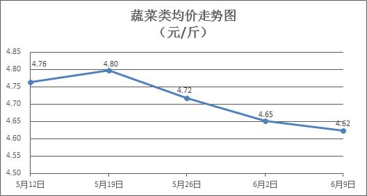 蔬菜類商品價格以降為主。所監(jiān)測的32 種蔬菜商品價格波動情況為8漲21跌3平,綜合零售均價為每斤4.62元,環(huán)比下降0.56%。其中:漲幅居前的品種包括萵筍、絲瓜、蓮藕,零售均價分別為每斤3.89元、4.48元、6.14元,環(huán)比分別上漲5.71%、5.66%、3.54%;跌幅靠前的品種包括青豆角、苦瓜、生菜,零售均價分別為每斤5.47元、4.52元、4.12元,環(huán)比分別下降6.50%、5.04%、4.19%。
