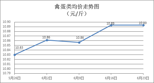 禽蛋類商品價格微幅盤整。所監(jiān)測的6種禽蛋類商品價格波動情況為2漲3跌1平,綜合零售均價為每斤10.89元,環(huán)比持平。其中:白條雞、白條鴨零售均價分別為每斤20.22元、14.99元,環(huán)比分別上漲0.35%、下降0.13%;白殼雞蛋、鴨蛋零售均價分別為每斤6.36元、7.50元,環(huán)比分別下降0.47%、下降0.40%。