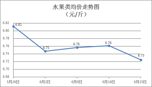 水果類商品價格略有下降。所監(jiān)測的6種水果商品價格波動情況為2漲4跌,綜合零售均價為每斤6.73元,環(huán)比下降0.54%。其中橙子、蘋果、葡萄零售均價分別為每斤5.66元、7.47元、15.01元,環(huán)比分別上漲1.07%、下降0.80%、下降0.33%。