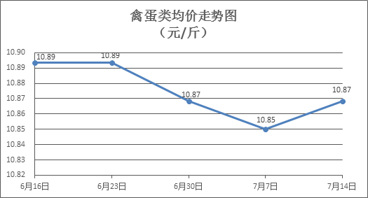 禽蛋類商品價(jià)格總體微漲。所監(jiān)測的6種禽蛋類商品價(jià)格波動(dòng)情況為3漲2跌1平,綜合零售均價(jià)為每斤10.87元,環(huán)比上漲0.18%。其中:白條雞、白條鴨零售均價(jià)分別為每斤20.08元、15.04元,環(huán)比分別下降0.15%、上漲0.20%;白殼雞蛋、咸鴨蛋零售均價(jià)分別為每斤6.38元、8.95元,環(huán)比分別上漲1.11%、下降0.11%。