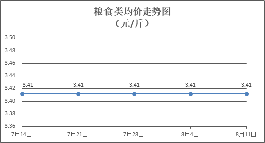 糧食類商品價(jià)格保持穩(wěn)定。所監(jiān)測的5種糧食類商品價(jià)格均持平,零售均價(jià)為每斤3.41元。其中:晚秈米、油粘米、標(biāo)準(zhǔn)粉零售均價(jià)分別為每斤3.30元、3.52元、3.17元,環(huán)比均持平。