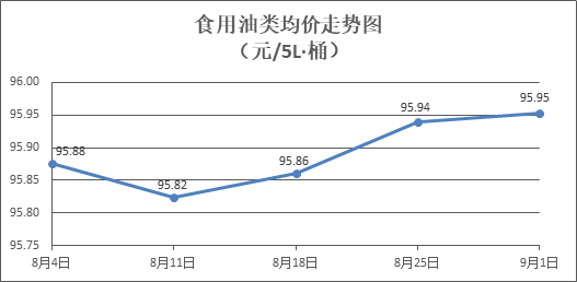 食用油類商品價(jià)格基本平穩(wěn)。所監(jiān)測(cè)的9種食用油(5L裝)商品價(jià)格波動(dòng)情況為2漲7平,綜合零售均價(jià)為每桶95.95元,環(huán)比上漲0.01%。其中:菜籽油、玉米油零售均價(jià)分別為每桶74.42元、77.67元,環(huán)比分別上漲0.07%、上漲0.09%。