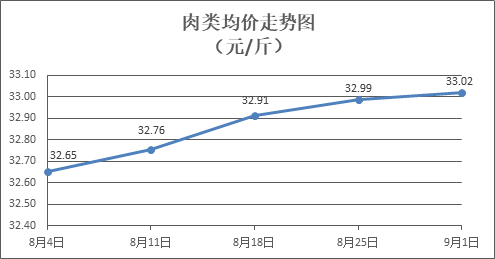肉類商品價(jià)格微幅盤升。所監(jiān)測(cè)的8種肉類商品價(jià)格波動(dòng)情況為4漲3跌1平,綜合零售均價(jià)為每斤33.02元,環(huán)比上漲0.10%。其中:排骨、精瘦肉、牛肉、帶骨羊肉零售均價(jià)分別為每斤33.02元、20.35元、45.46元、43.37元,環(huán)比分別上漲0.70%、上漲0.05%、持平、下降0.02%。