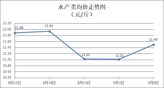 水產(chǎn)類商品價(jià)格有所上漲。所監(jiān)測(cè)的9種水產(chǎn)商品價(jià)格波動(dòng)情況為7漲1跌1平,綜合均價(jià)為每斤21.49元,環(huán)比上漲2.27%。其中:草魚(yú)、鯽魚(yú)、羅非魚(yú)、海蝦零售均價(jià)分別為每斤11.24元、14.21元、8.92元、52.72元,環(huán)比分別上漲0.27%、上漲0.07%、上漲0.11%、上漲7.05%。