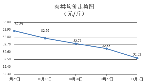 肉類(lèi)商品價(jià)格持續(xù)回調(diào)。所監(jiān)測(cè)的8種肉類(lèi)商品價(jià)格波動(dòng)情況為3漲5跌,綜合零售均價(jià)為每斤32.52元,環(huán)比下降0.39%。其中:排骨、精瘦肉、腱子肉、牛腩零售均價(jià)分別為每斤32.29元、20.17元、48.80元、38.81元,環(huán)比分別上漲0.04%、下降0.27%、下降0.80%、下降1.48%。