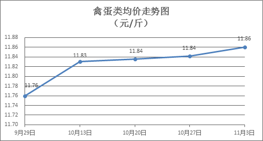 禽蛋類(lèi)商品價(jià)格微幅盤(pán)整。所監(jiān)測(cè)的5種禽蛋類(lèi)商品價(jià)格波動(dòng)情況為2漲3跌,綜合零售均價(jià)為每斤11.86元,環(huán)比上漲0.14%。其中:白條雞、白條鴨零售均價(jià)分別為每斤20.44元、15.36元,環(huán)比分別上漲0.41%、下降0.02%;雞蛋、鴨蛋零售均價(jià)分別為每斤6.55元、7.76元,環(huán)比分別上漲0.46%、下降0.37%。