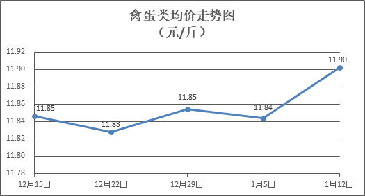 禽蛋類商品價格總體略漲。所監(jiān)測的5種禽蛋類商品價格波動情況為1漲1跌3平,綜合零售均價為每斤11.90元,環(huán)比上漲0.49%。其中:白條雞、白條鴨零售均價分別為每斤20.93元、15.21元,環(huán)比分別上漲1.55%、下降0.20%;雞蛋、咸鴨蛋零售均價分別為每斤6.56元、9.14元,環(huán)比均持平。