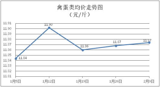禽蛋類商品價(jià)格微幅上漲。所監(jiān)測(cè)的5種禽蛋類商品價(jià)格波動(dòng)情況為3漲1跌1平,綜合零售均價(jià)為每斤11.87元,環(huán)比上漲0.05%。其中:白條雞、白條鴨零售均價(jià)分別為每斤20.74元、15.30元,環(huán)比分別上漲0.05%、上漲0.53%;雞蛋、鴨蛋零售均價(jià)分別為每斤6.62元、7.57元,環(huán)比分別上漲0.46%、下降1.17%。