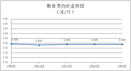 糧食類商品價(jià)格基本平穩(wěn)。所監(jiān)測(cè)的4種糧食類商品價(jià)格均持平,零售均價(jià)為每斤3.395元。其中:絲苗米、面粉零售均價(jià)分別為每斤3.54元、3.40元,環(huán)比均持平。