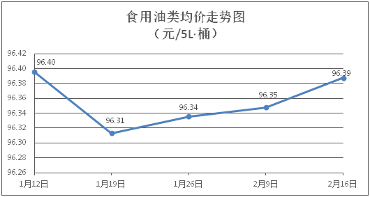 食用油類商品價格基本平穩(wěn)。所監(jiān)測的9種食用油(5L裝)商品價格波動情況為2漲3跌4平,綜合零售均價為每桶96.39元,環(huán)比上漲0.04%。其中:魯花花生油、玉米油零售均價為每桶156.04元、76.67元,環(huán)比分別上漲0.05%、下降0.09%。