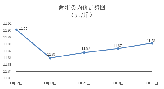 禽蛋類商品價格穩(wěn)中有漲。所監(jiān)測的5種禽蛋類商品價格波動情況為2漲1跌2平,綜合零售均價為每斤11.88元,環(huán)比上漲0.07%。其中:白條雞、白條鴨零售均價分別為每斤20.68元、15.30元,環(huán)比分別下降0.29%、持平;雞蛋、鴨蛋零售均價分別為每斤6.64元、7.65元,環(huán)比分別上漲0.30%、上漲1.06%。