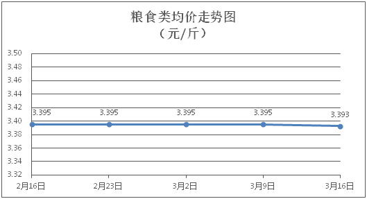 糧食類商品價(jià)格基本平穩(wěn)。所監(jiān)測(cè)的4種糧食類商品價(jià)格波動(dòng)情況為1跌3平,綜合零售均價(jià)為每斤3.393元,環(huán)比下降0.07%。其中:絲苗米、面粉零售均價(jià)分別為每斤3.53元、3.40元,環(huán)比分別下降0.28%、持平。