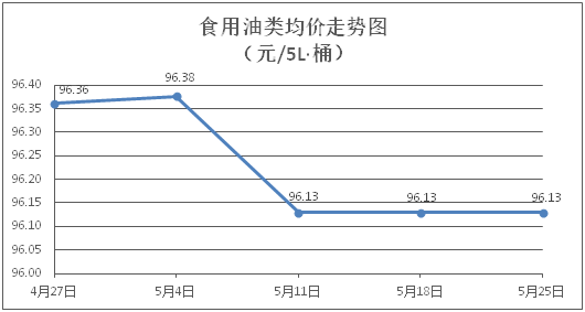 食用油類商品價(jià)格基本平穩(wěn)。所監(jiān)測(cè)的9種食用油(5L裝)商品價(jià)格波動(dòng)情況為1漲1跌7平,綜合零售均價(jià)為每桶96.13元,環(huán)比下降0.001%。其中:魯花花生油、金龍魚(yú)調(diào)和油零售均價(jià)為每桶156.36元、71.46元,環(huán)比分別下降0.03%、上漲0.04%。