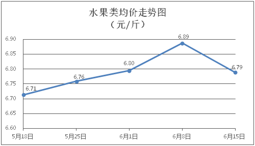 水果類商品價(jià)格穩(wěn)中有降。所監(jiān)測的6種水果商品價(jià)格波動(dòng)情況為1漲2跌3平,綜合零售均價(jià)為每斤6.79元,環(huán)比下降1.43%。其中橙子、香蕉、葡萄零售均價(jià)分別為每斤6.52元、3.44元、14.49元,環(huán)比分別下降0.91%、上漲0.29%、下降3.59%。