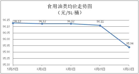 食用油類商品價(jià)格總體微降。所監(jiān)測(cè)的9種食用油(5L裝)商品價(jià)格波動(dòng)情況為3漲5跌1平,綜合零售均價(jià)為每桶95.94元,環(huán)比下降0.18%。其中:大豆油、玉米油零售均價(jià)為每桶61.50元、76.19元,環(huán)比分別下降0.23%、上漲0.14%。