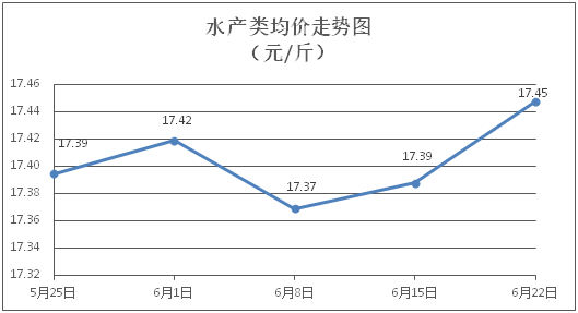 水產(chǎn)類商品價(jià)格微幅上漲。所監(jiān)測(cè)的9種水產(chǎn)商品價(jià)格波動(dòng)情況為6漲1跌2平,綜合均價(jià)為每斤17.45元,環(huán)比上漲0.35%。其中:草魚、鯽魚、淡水鱸魚、基圍蝦零售均價(jià)分別為每斤11.18元、14.25元、22.43元、30.70元,環(huán)比分別持平、上漲0.35%、上漲0.22%、上漲0.36%。