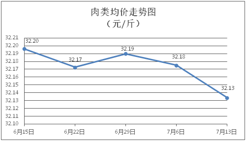 肉類商品價(jià)格微幅下降。所監(jiān)測(cè)的8種肉類商品價(jià)格波動(dòng)情況為7跌1平,綜合零售均價(jià)為每斤32.13元,環(huán)比下降0.13%。其中:排骨、精瘦肉、肋條肉、牛肉、帶骨羊肉零售均價(jià)分別為每斤30.19元、18.90元、15.72元、46.65元、42.19元,環(huán)比分別下降0.03%、下降0.21%、下降0.76%、下降0.06%、下降0.05%。